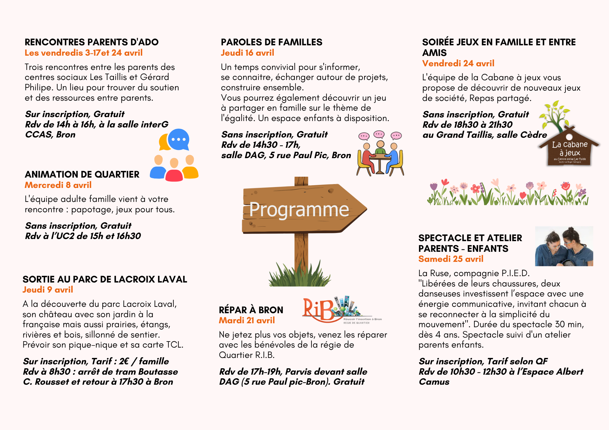 Toute une programmation pour découvrir des activités et des sorties à faire en famille et avec d’autre familles, durant les petites vacances scolaires.
